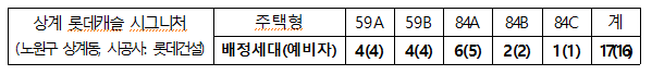 이번에 특별공급이 진행되는 아파트에 배정된 세대 수는 아래와 같다.
