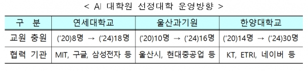 AI대학원, 연세대와 울산과학기술원(UNIST), 한양대 신규 선정