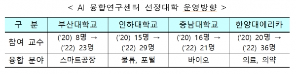 AI융합연구센터로 부산대, 인하대, 충남대, 한양대 에리카 선정