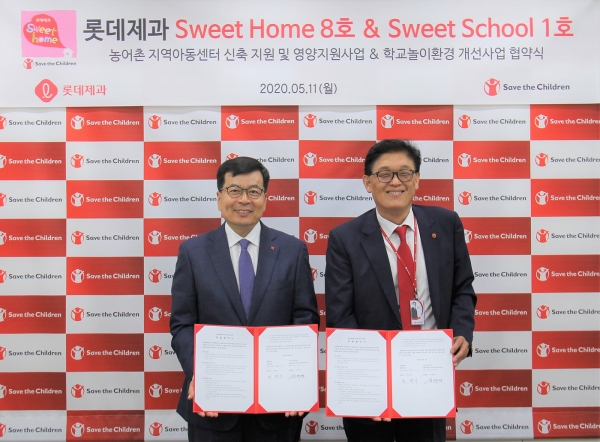롯데제과와 국제구호개발NGO 세이브더칠드런은 5월 11일 서울 마포에 위치한 세이브더칠드런 본사에서 ‘롯데제과 스위트홈(Sweet Home)’ 8호점 건립을 위한 협약식을 가졌다고 12일 전했다.