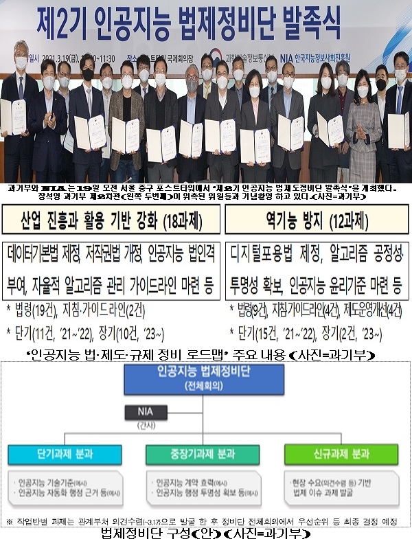 과학기술정보통신부와 한국지능정보사회진흥원(NIA)은 19일 ‘제2기 인공지능 법제도정비단’ 발족식을 개최했다고 밝혔다.
