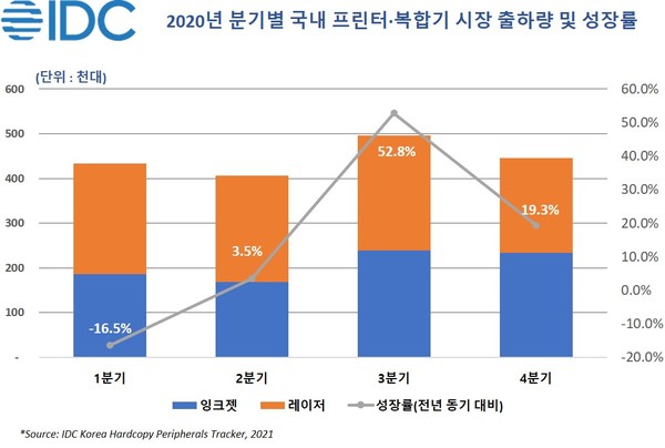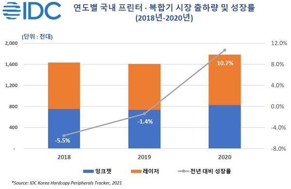 IT 시장분석 및 컨설팅 기관 인터내셔날데이터코퍼레이션코리아(이하 한국IDC)가 최근 발간한 ‘한국 프린터·복합기 시장 분석’ 연구 보고서를 통해 2020년 국내 프린터·복합기 시장 변화와 업계 동향을 제시했다.
