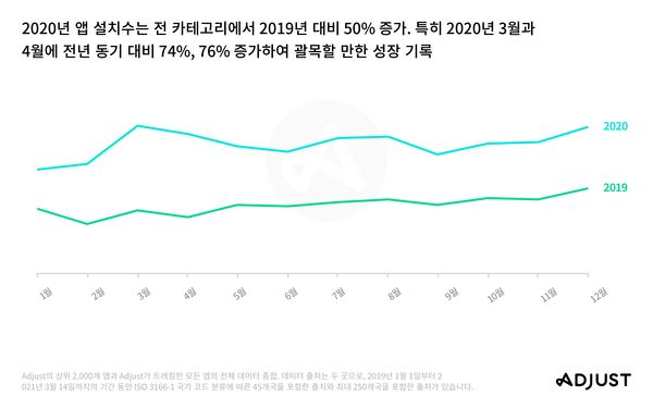 게임 앱은 2020년 최고 기록을 경신했고 특히 하이퍼 캐주얼 게임의 경우 설치 수가 43%나 증가했으며 비하이퍼 캐주얼 게임의 경우 26%의 성장세를 보였다.