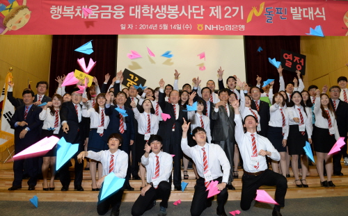 NH농협은행은 14일 본점 회의실에서 봉사단원 등 70여명이 참석한 가운데 행복채움금융 대학생봉사단 제2기「N돌핀」발대식을 가졌다.