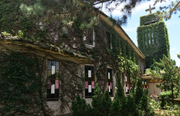 신청향 북쪽 끝 리우시(立霧溪) 하구 마을 골목에는 조용히 자리한 ‘연습곡서점’이 있다. 그 맞은편에 신청천주당이 서있다. 문헌에 따르면 이곳은 일제강점기에 세워진 신사 터로, 석등과 고마이누가(狛犬-수호견상) 지금까지 남아 있다. 해방 이후 일부는 철거 대신 개조되며 독특한 형태가 되었고, 지금은 성모상과 고마이누가 나란히 서며 시대의 흔적을 전한다.