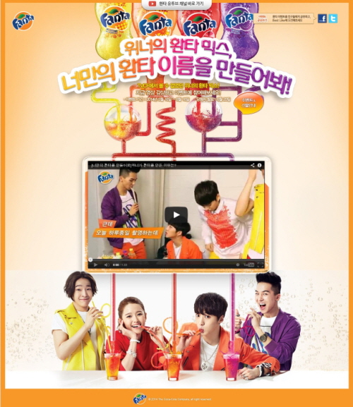 코카-콜라사의 재미있고 신나는 음료 브랜드 환타는유튜브 공식 채널인 ‘환타 믹스’에서 소비자들이 위너 멤버들이 각기 다른 플레이버를 믹스해 만든 `환타믹스’에 나만의 이름을 응모하는‘너만의 환타 이름을 만들어봐’이벤트를 진행하고 있다.