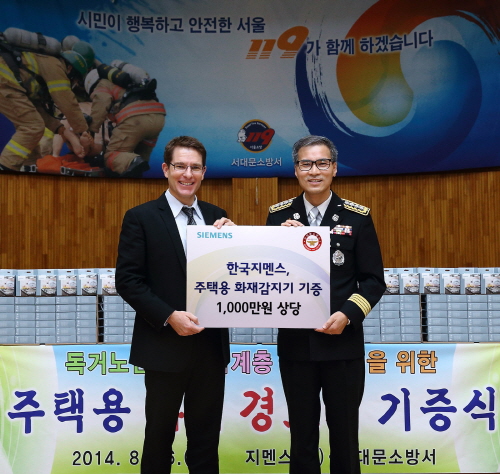 혁신적인 친환경 기술력과 윤리경영을 바탕으로 하는 세계적인 전기전자 기업, 지멘스의 한국법인 한국지멘스는 26일 서대문소방서를 방문해 천 만원 상당의 자사 단독경보형감지기를 무상 기증했다.