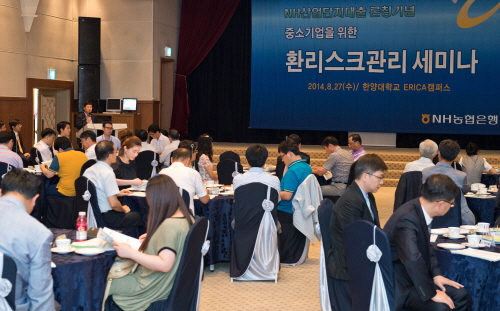 NH농협은행은 27일 안산 한양대 ERICA캠퍼스에서 최근 급격한 원화 강세로 어려움을 겪고 있는 수출 중소기업을 위한 『환리스크 관리 세미나』를 개최하였다.